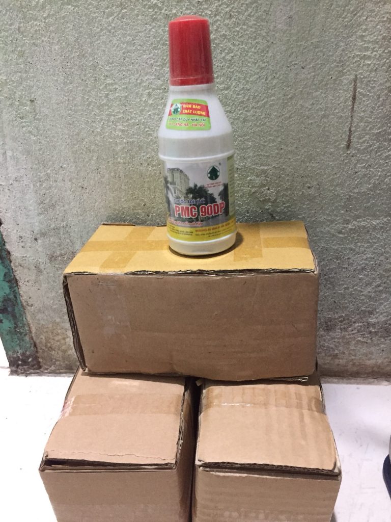– Sau 10-15 ngày tiến hành kiểm tra nếu thấy xung quanh hộp có đường ăn của mối, đó là lúc mối đã ăn nhiều trong hộp. Trước hết dỡ hộp nhử mồi, đổ hết các miếng mồi và những con mối trong hộp nhử vào 1 chậu khô, sau đó dùng thuốc bột PMC90 bơm đều lên các con mối trên bề mặt, miếng mồi cho đều rồi xếp lại hộp nhử (cả những con mối) để hộp nhử vào đúng vị trí ban đầu, 3 đến 5 ngày sau khi mối rút hết về tổ thì dọn bỏ hộp.