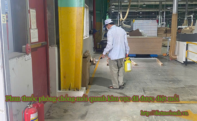 -Bước 3: Phun thuốc phòng chống mối: Sau 3-5 ngày tiến hành dọn dẹp và kiểm tra hiện trường, mối đã rút về tổ chết sạch.tiếp theo chúng ta dùng dung dịch MYTHIC, TERMIZE, loại thuốc này chuyên dùng để phòng chống mối hiệu quả nhất, phun lên những khu vực đã bị mối tấn công loại dung dịch này có chức năng tồn lưu nhằm để bảo vệ không cho mối tấn công trở lại.